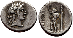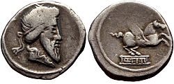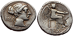 Roman Republic Denomination: Denarius Time: 87 BC; moneyer L. Rubrius Dossenus Weight: 3.57 g Diameter: approx. 16.5 mm Reference: Crawford 348/3