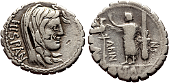 This might be a good place to briefly mention who decided what would be on coins during the Republic. This was done by officials called "tresviri monetales", anglicized as "moneyers". They were young aristocrats, usually at the beginning of their political career, elected by three for a period of one year. It was most often one of their first public functions, a step towards more responsible positions.
