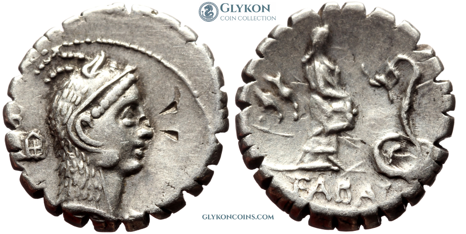 Roman Republic Denomination: Denarius (serratus) Time: 64 BC; moneyer Lucius Roscius Fabatus Weight: 3.94 g Diameter: approx. 20.7 mm Reference: Crawford 372/2