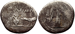 Civil Wars or Imperiatorial Period Denomination: Quinarius (half-Denarius) Time: 43/42 BC; Mark Antony; field mint somewhere in Gaul after the battle of Mutina Weight: 1.45 g Diameter: approx. 15 mm Reference: Crawford 489/4; Sydenham 1159