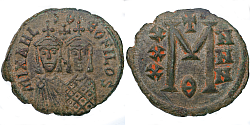 Heraclius (610-641 AD) Denomination: 40 nummi (follis) Mint: Cyzicus Time: 611-612 AD Weight: 10.29 g Diameter: approx. 30.7 mm Reference: Sear 839; MIB 184