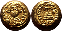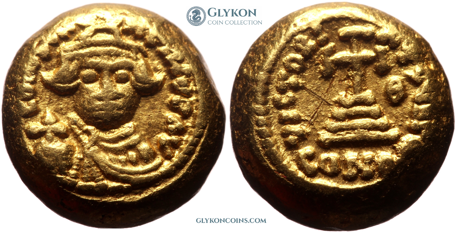 Comment: During the final decades of East Roman rule in North Africa, the mint in Carthage, for inexplicable reasons, produced gold solidi in a unique, small and globular shape instead of the standard flat form seen elsewhere in the empire. These globular coins, thicker and smaller in diameter, likely emerged in response to local practices or economic conditions, though their precise purpose remains unclear. Interestingly, even after the Arab conquest of Carthage, the new rulers continued minting gold coins in this unusual format, suggesting that the distinct design had gained acceptance in the region’s monetary system. |