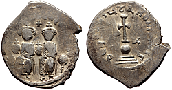 Comment: First effectual emperor since the death of Constantine IV, Leo's accession III put an end to the so-called Twenty Years’ Anarchy that ravaged the battered empire and reduced it to Anatolia, Thrace, Sicily and a few scattered islands and territories on European coasts. Leo managed to push back the hitherto unstoppable Islamic wave at the gates of Constantinople during the famous Great Siege of 717-718. The restored semblance of order allowed for a slow and modest economic and institutional recovery. This is reflected among other things by the sudden improvement of the quality and size of bronze coinage. Or by the sudden reestabishment of silver coinage in significant quantity. In the latter case, this is connected to the establishment of trade relations with the Muslim world, as the Caliphate commanded control over vast silver mines in Central Asia and other places. Indeed, several ealry silver miliaresions are even ovestruck over Islamic dirhams. |