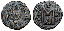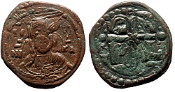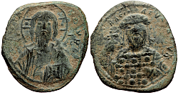 Comment: Last follis minted in Constantinople to bear the traditional indication of denomination. By that time it was entirely a matter of convention and inertia, as smaller change was no longer minted for about 110 years. Aside from unusual mintages from remote places like Crimea, the follis was the only coin used in smaller transactions throughout the empire and its small value meant that several of them were often used for each of daily purchases. |