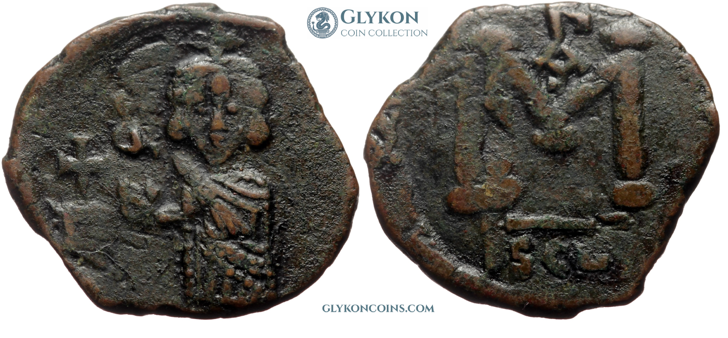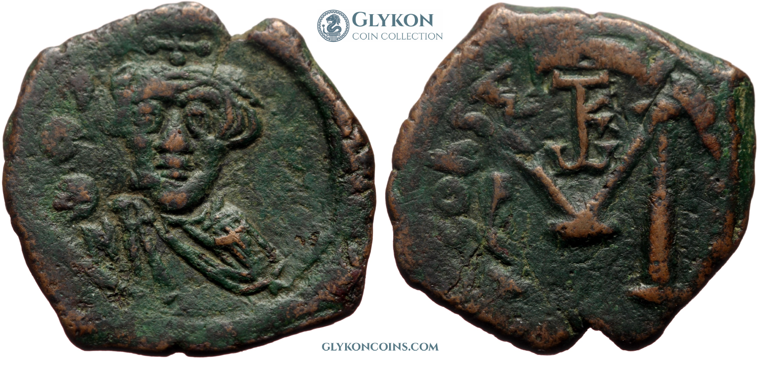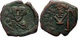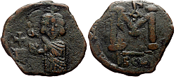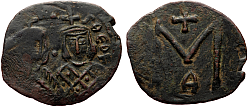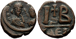 Heraclius (610-641 AD) Denomination: 12 nummi (dodekanummium) Mint: Alexandria Time: 613-618 AD Weight: 4.71 g Diameter: approx. 16.7 mm Reference: Sear 853; MIB 200; DOC 189