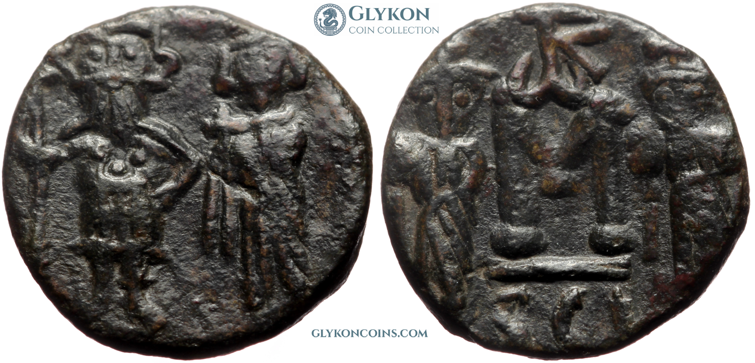 Basil II the Bulgar Slayer (963/976-1025 AD) with Constantine VIII (963/976-1028 AD) Denomination: follis (class 2 anonymous follis) Mint: Constantinople Time: 976-1028 AD Weight: 12.50 g Diameter: approx. 30.1 mm Reference: Sear 1813