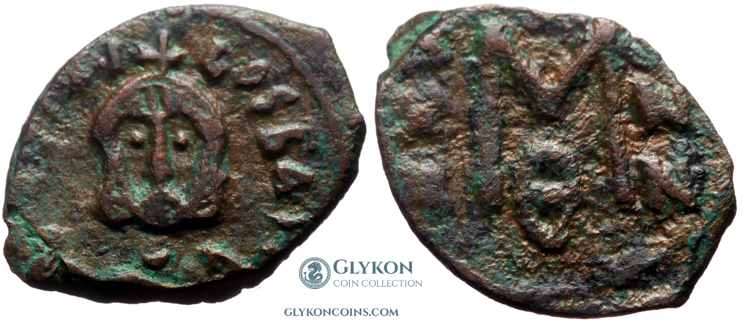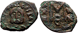 Justinian II (685-695 and 705-711 AD) Denomination: 40 nummi (follis) Mint: Syracuse Time: 685-695 AD (first reign) Weight: 3.28 g Diameter: approx. 22.2 mm Reference: Sear 1301