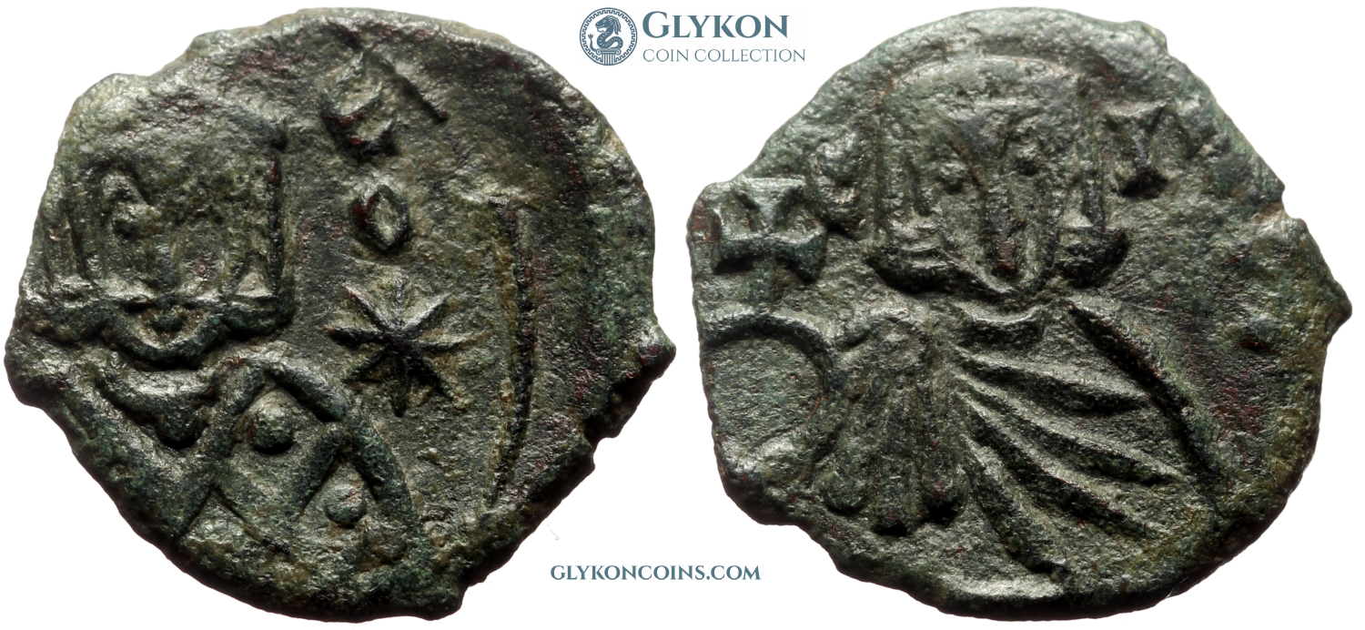 Comment: At the beginning of the reign of John Tzimiskes, Byzantine copper coinage underwent a sudden and rather unexpected change. Emperors stopped appearing on copper folles while still showing up on silver and gold coinage. Instead, their image was replaced by that of Christ. As historical sources do not explain this change, we are doomed to make educated guesses. The most likely explanation is that John, an extremely pious man, had a conscience problem after seizing the imperial throne by outright murder of his predecessor Nicephorus II Phocas and by adultery with his wife, Theophanu. It's likely that his guilt led him to the introduction of religiously inspired themes into his coinage. This change outlived the brief rule of John (thus the coins from his reign are actually rather scarce) and became the standard Byzantine copper coinage for about a century. These folles are called 'Anonymous' as they don't include the current emperor (or his family or any other then-living person).