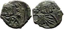 Comment: During Byzantine times Sicily, much like Egypt, had its own monetary system. Theoretically the island used the same denominations as the core part of the empire, but in reality it had a local mint that produced coins of much smaller size and often strikingly different designs, usually adorned with the SCL monogram. When Constantinopolitan folles are found in Sicily, they almost invariably bear a countermark (also SCL, emperor's bust, or both) indicating that they were specifically allowed for circulation on the island. |