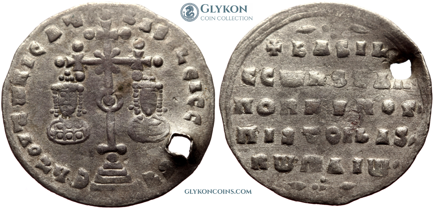 Basil II the Bulgar Slayer (963/976-1025 AD) with Constantine VIII (963/976-1028 AD) Denomination: Miliaresion Mint: Constantinople Time: 976-1025 AD Weight: 2.36 g Diameter: approx. 24.1 mm Reference: Sear 1810