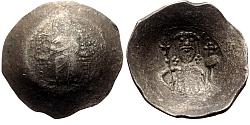 Comment: During the Komnenian era, the cup-shaped Byzantine coins known as trachea reached their definitive form. Their strongly concave shape made them extremely difficult to strike properly, so it is almost impossible to find a specimen on which the entire obverse and reverse designs and legends are fully visible and legible at the same time. |