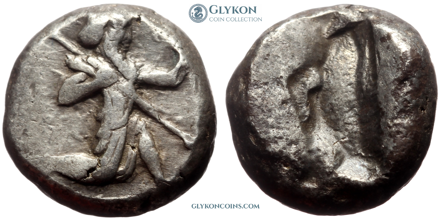 Achaemenid Empire (Persia) Denomination: Siglos Time: 420-375 BC, reign of Xerxes II to Artaxerxes II Weight: 5.48 g Diameter: approx. 14.4 mm Reference: Type IIIb
