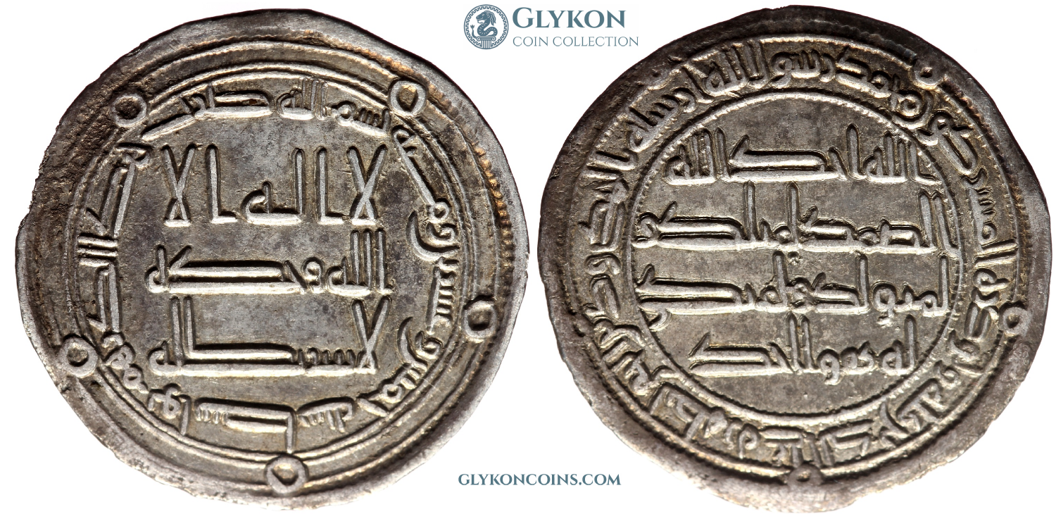 early Umayyad Caliphate, reign of Hisham ibn Abd al-Malik (724-743 AD) Denomination: dirham Mint: Wasit Time: 742-743 AD / 125 AH Weight: 2.88 g Diameter: approx. 24.6 mm Reference: Album 137