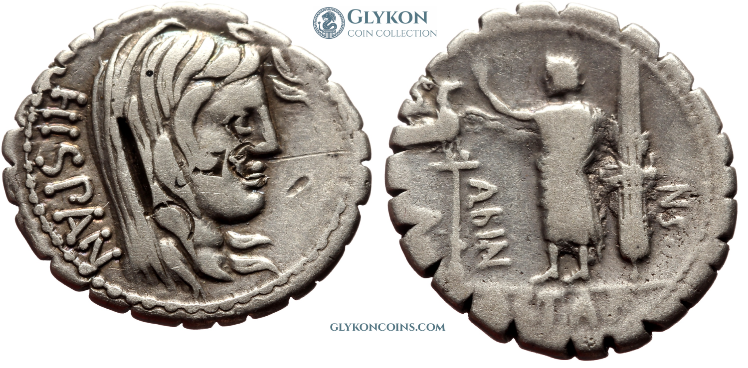 This interesting coin comes from the period of Sulla's bloody dictatorship and the reverse shows a well-recognizable attribute of the Roman dictator - fasces with an axe attached. The standing figure may be Sulla himself. This is not yet a portrait in the likeness of Hellenistic kings, but the taboo on depicting living persons was slowly being broken. On the other hand, the depiction of the personification of Hispania on the obverse is puzzling. At that time, there was a war in Spain with Sertiorius, the last active combatant of Marius' populares. The Marians were defeated and massacred by Sulla everywhere else. Was this a propagandistic assurance that the situation in Spain would soon be under control? |