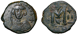 Heraclius (610-641 AD) Denomination: 12 nummi (dodekanummium) Mint: Alexandria Time: 613-618 AD Weight: 4.71 g Diameter: approx. 16.7 mm Reference: Sear 853; MIB 200; DOC 189