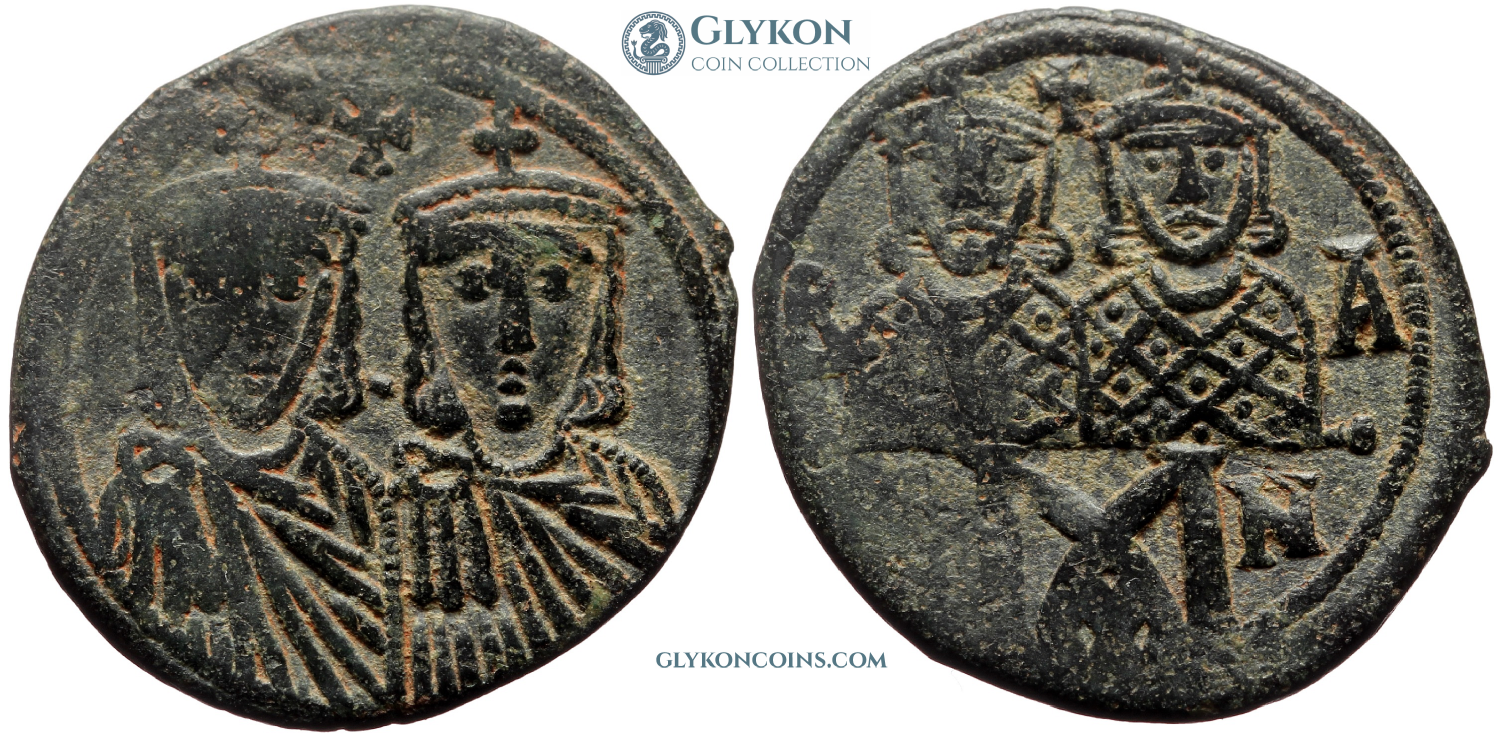 Constantine VI (780-797 AD) and Irene Denomination: 40 nummi (follis) Mint: Constantinople Time: 780-797 AD Weight: 2.47 g Diameter: approx. 18.4 mm Reference: Sear 1598; DOC 7